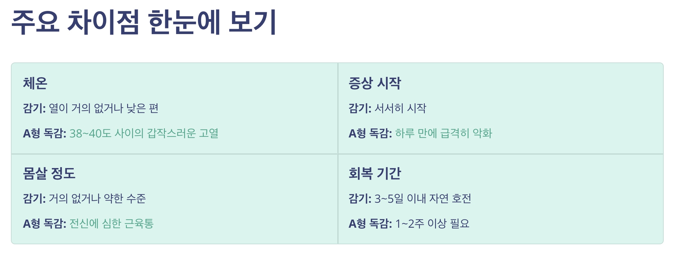 | 구분 | 감기 | A형 독감 |